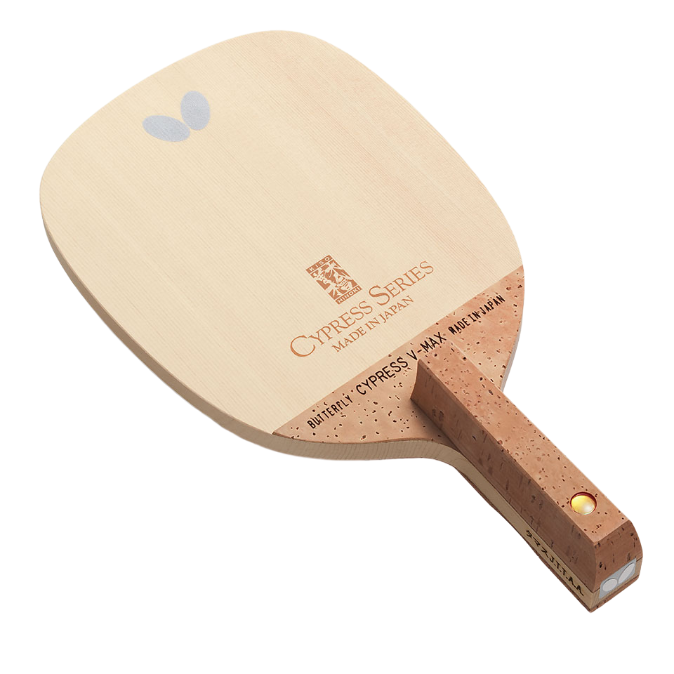 В этой серии модель Butterfly Cypress V-Max является «золотой серединой» по скорости и мощи. Она предназначена для игроков, которые ведут активную атакующую игру. Как и другие модели линейки, V-Max полностью выполнено из 10-миллиметрового слоя отборного кипариса Кисо Хиноки, обладает средней жесткостью и дарит неповторимое ощущение при контакте с мячом.