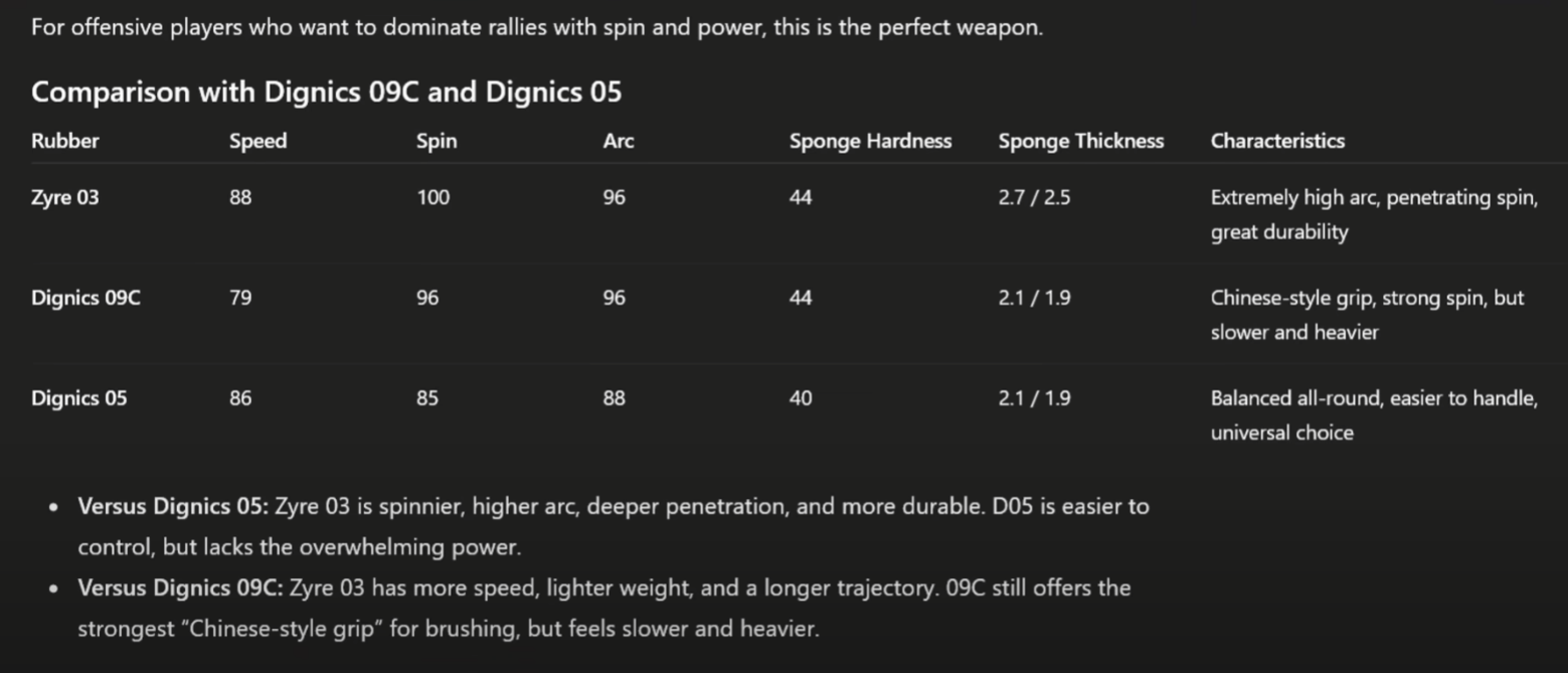 Zyre 03 — идеальный выбор для теннисистов, которым нужна накладка для мощной атакующей игры с акцентом на экстремальное вращение и контроль.